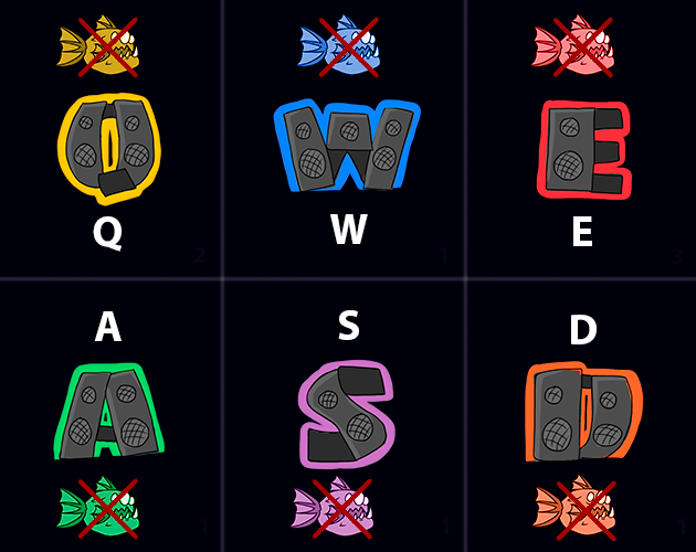 Gameplay: press the keys in the color of the fish
